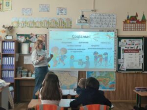 У 1-Б класі класний керівник Шкуренко С.Л. організувала заняття про природні явища: бурі, грози, шквали, сильні дощі та урагани. Учні переглядали навчальні відео та вчилися правильно діяти у приміщенні, знаходити правило «двох стін» та безпечне місце укриття.