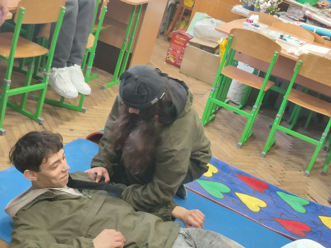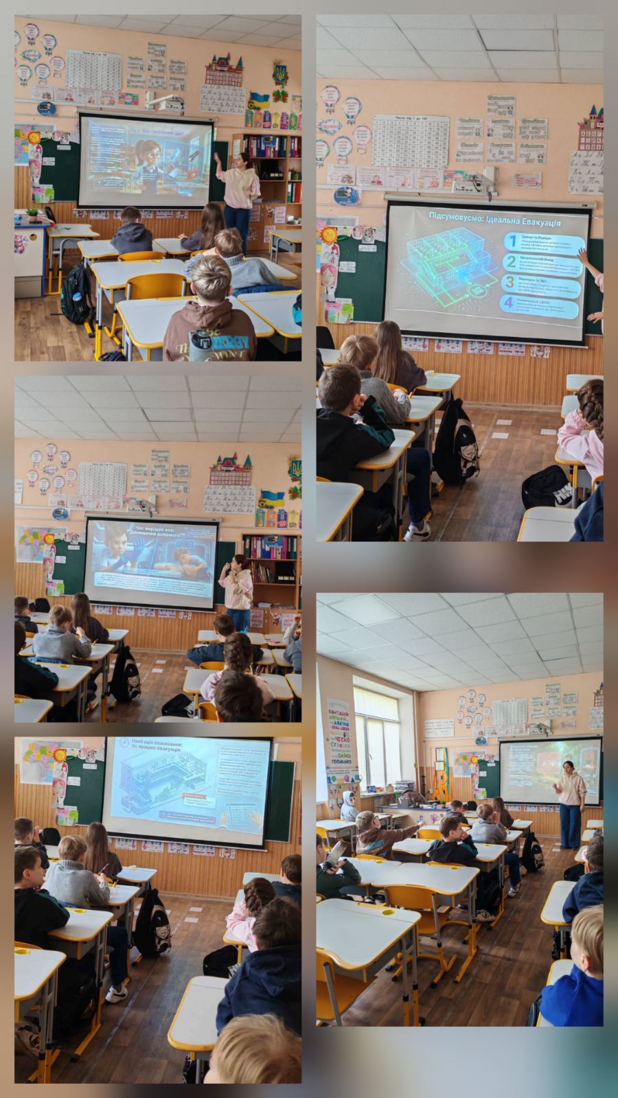 У 4-Б класі зі своїм класним керівником Світланою Тарасівною діти переглядали навчальні відео про евакуацію, дізнавалися, якою має бути правильна евакуація приміщення, а також чому час є вирішальним під час надання домедичної допомоги.
