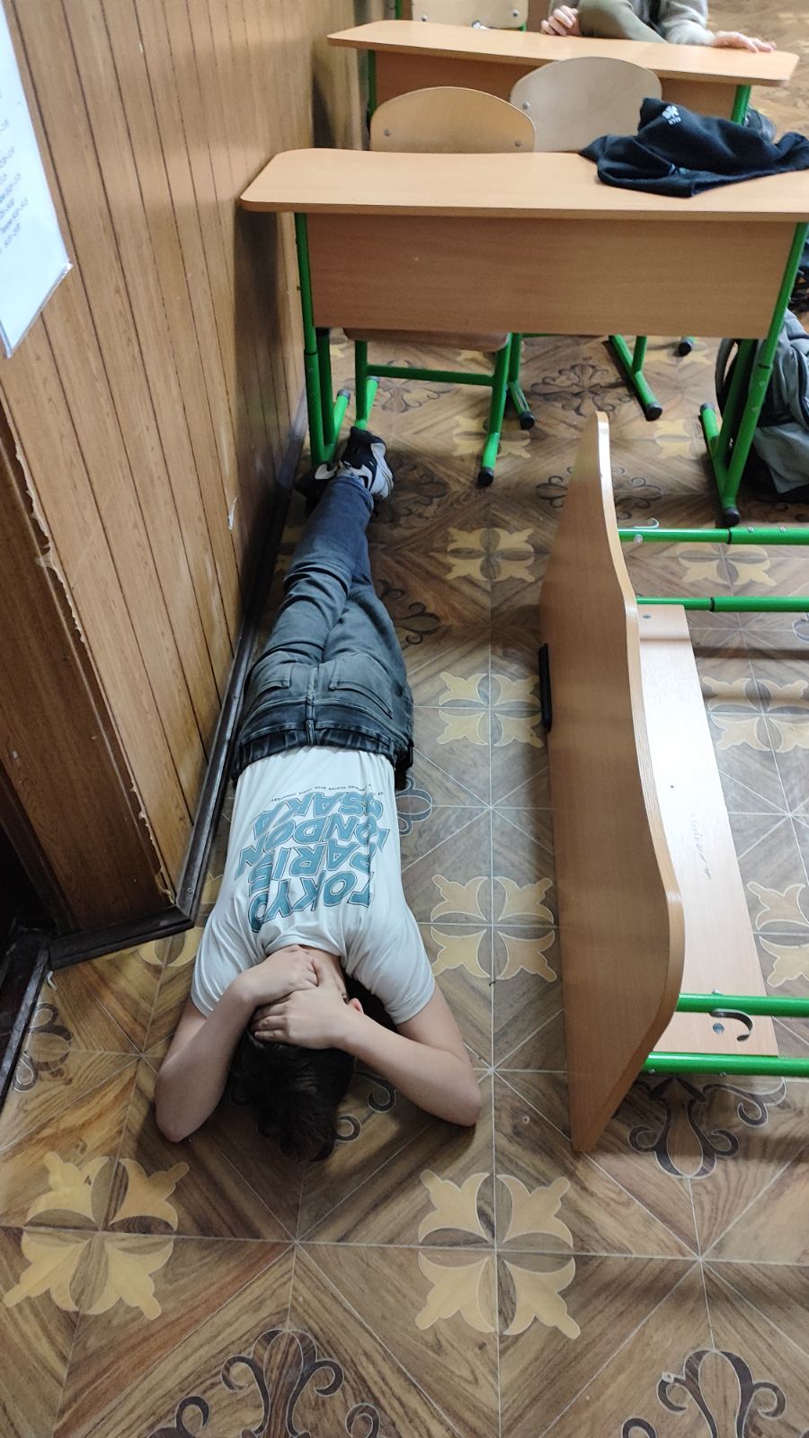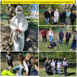 У 5-А класі класний керівник Головко А.Ю. провела змістовний урок-тренування з цивільного захисту. Учні вчилися швидко одягати захисний костюм, відпрацьовували алгоритм дій, якщо небезпека застала на відкритій місцевості, тренувалися правильно та швидко лягати на землю й захищати голову руками. Окрему увагу приділили обговоренню подій, що нещодавно відбулися в нашому районі, зокрема темі терористичних загроз та важливості уважності, злагодженості й уміння діяти без паніки.