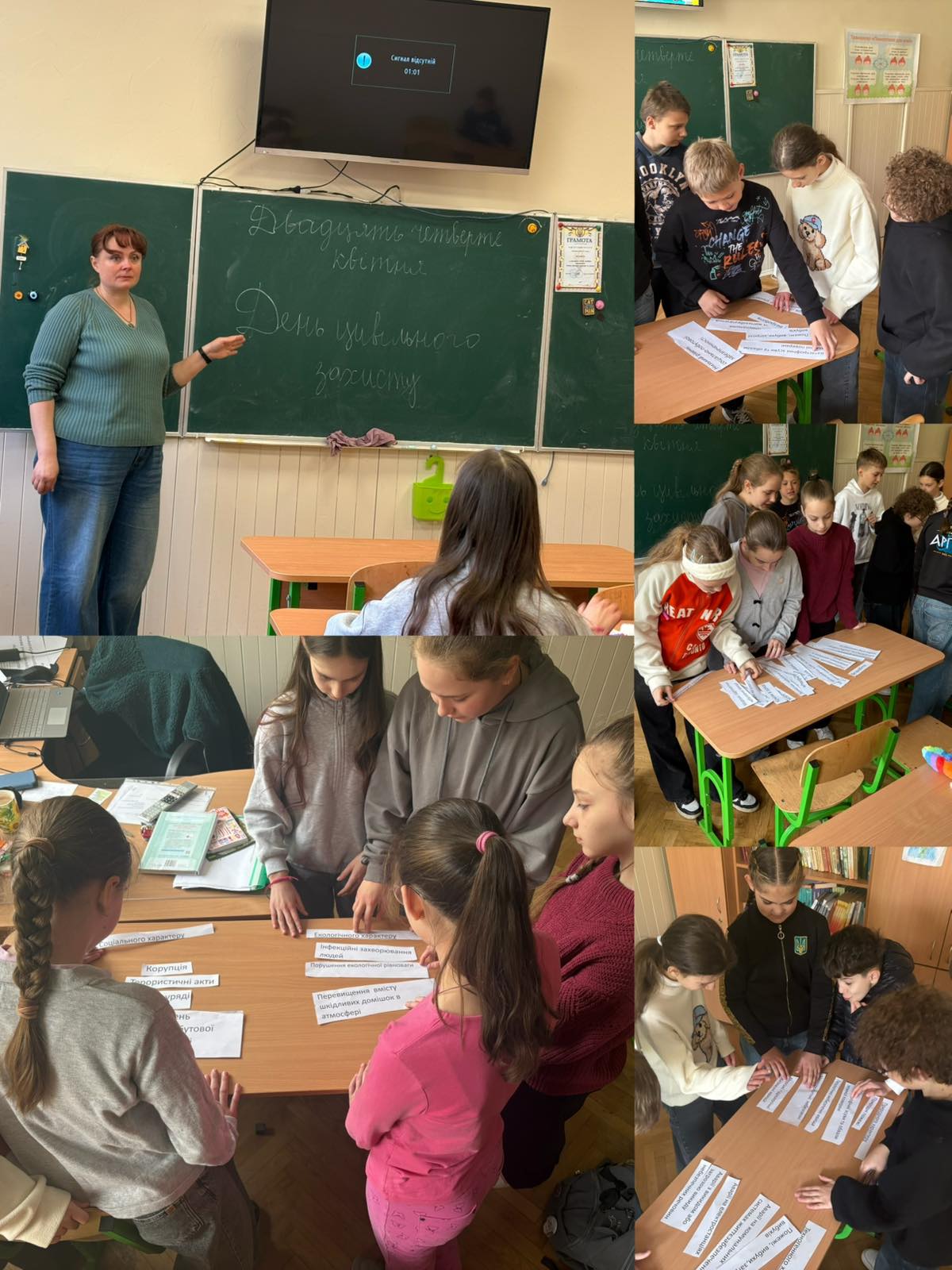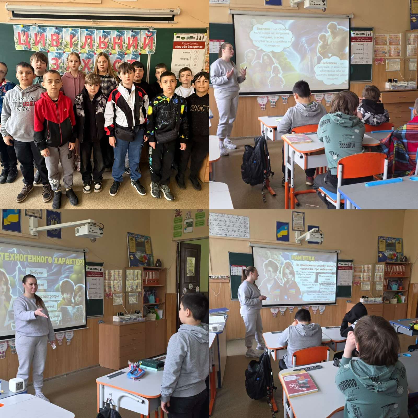 У цей день в кожному класі пройшли тематичні уроки, виховні години та бесіди, присвячені цивільному захисту, правилам поведінки під час повітряної тривоги, надзвичайних ситуацій, пожежної безпеки та алгоритмам дій у разі небезпеки. Учні пригадали важливі правила, які можуть зберегти життя та здоров’я.