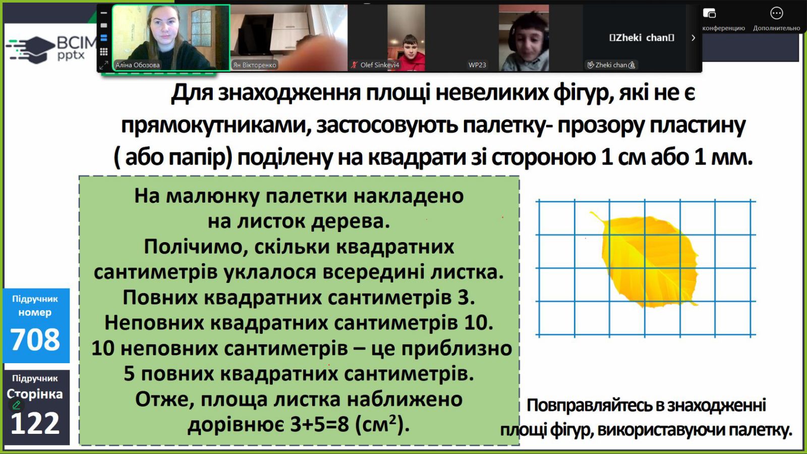 З Олєйніковою А.С. на ЯДС повторювали правила дорожнього руху, а на математиці обчислювали площу за допомогою палетки та розв’язували задачі на периметр прямокутника.
