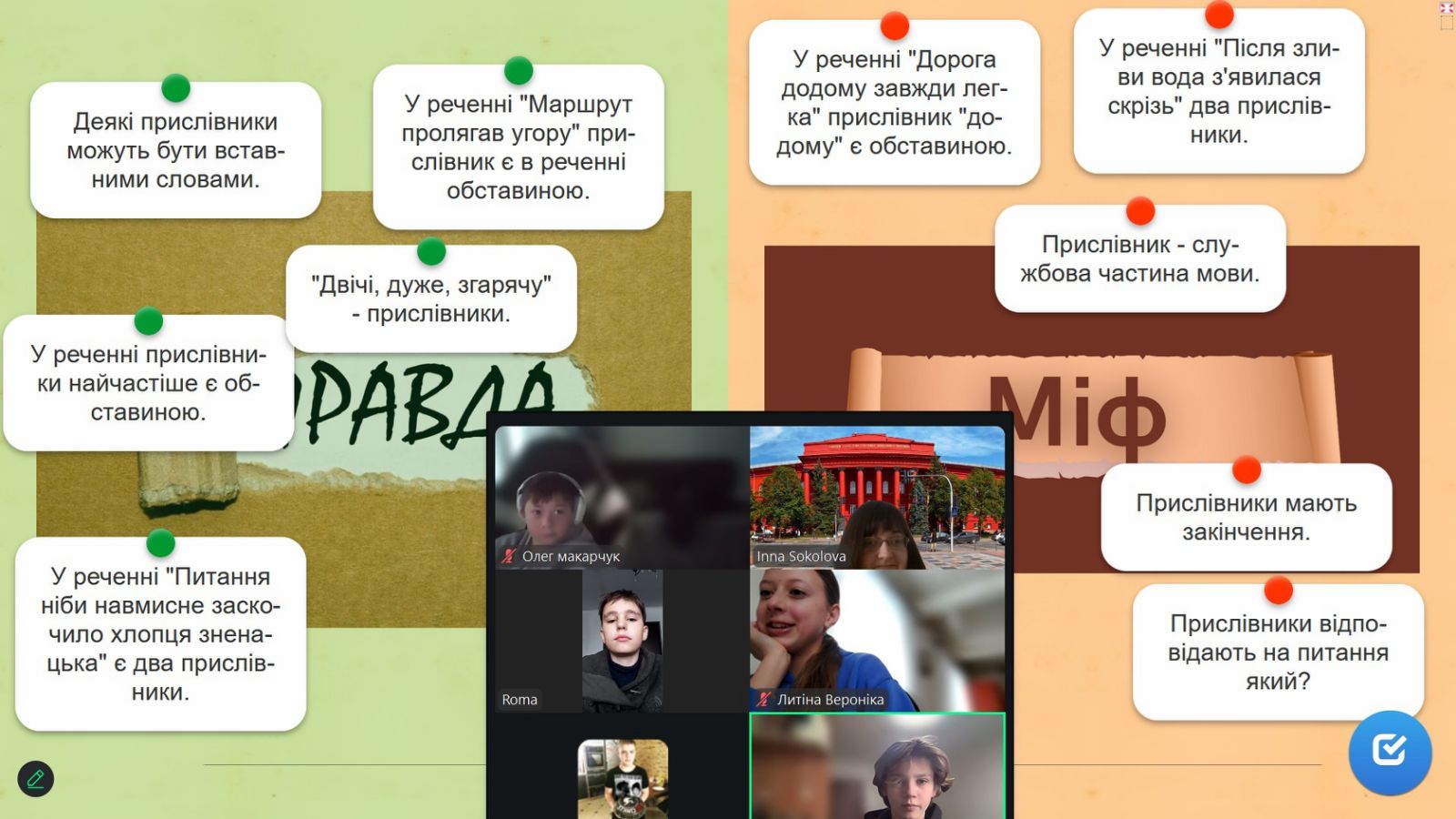 Із Соколовою Інною Михайлівною повторювали й систематизували знання про прислівник, виконували вправи та складали власні приклади.