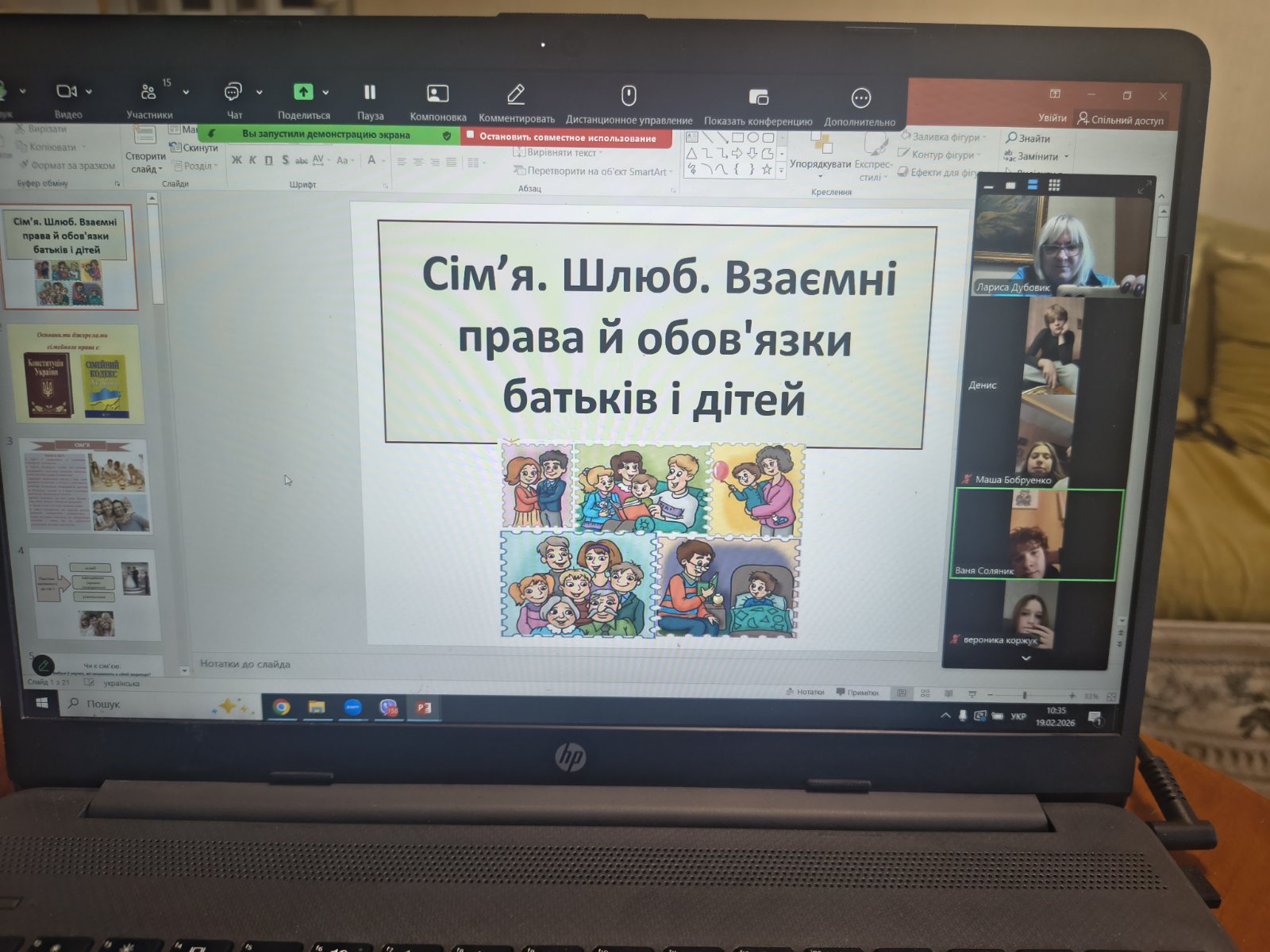 На уроці історії з Дубовик Л.І. учні не лише говорили про сім’ю, шлюб, права й обов’язки батьків і дітей, а й спробували подивитися на ці поняття крізь призму реального життя. Разом аналізували життєві ситуації, обговорювали, як закони захищають кожного члена родини, та знайомилися з положеннями Конституція України і Сімейний кодекс України. Гімназисти вчилися розуміти свої права й усвідомлювати власні обов’язки.