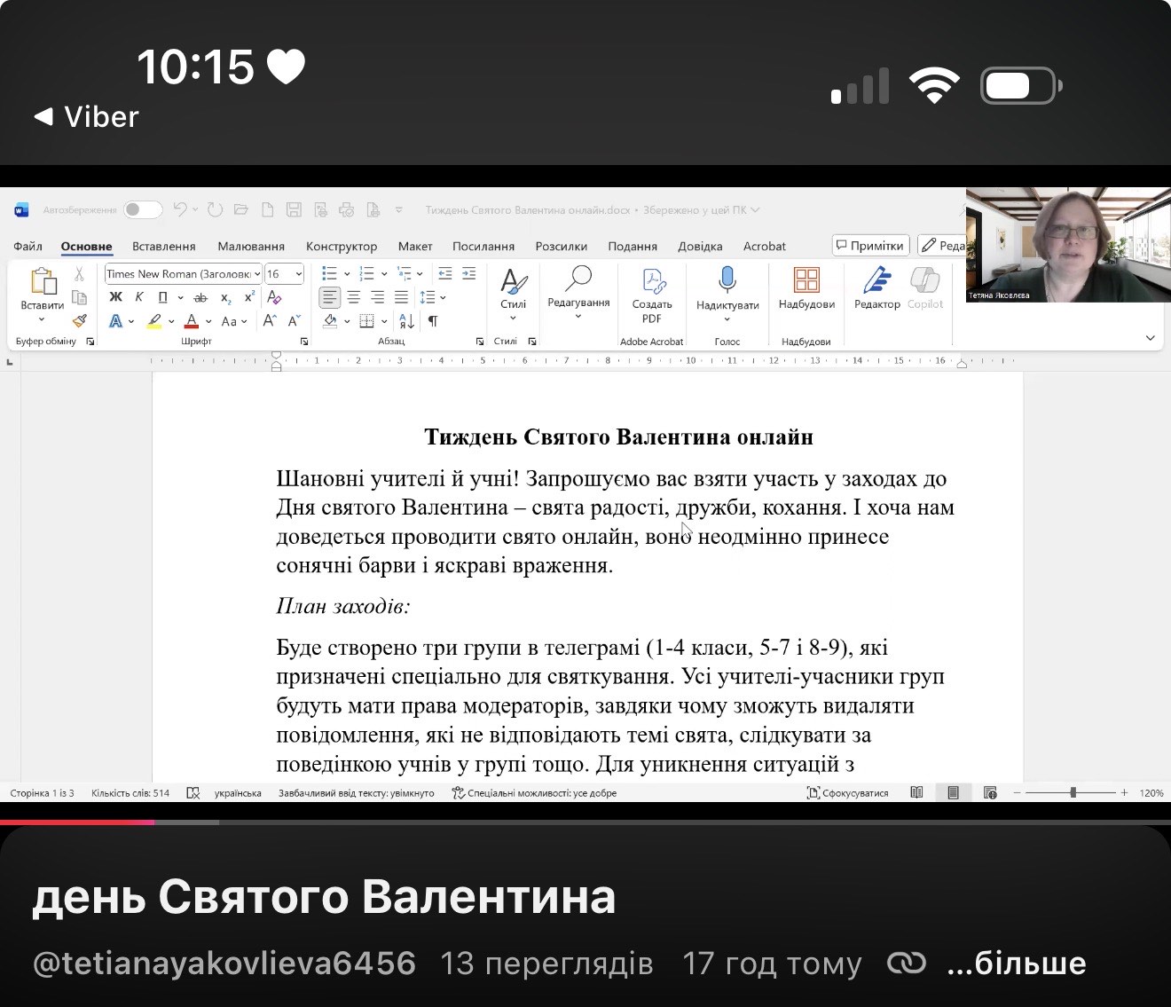Такий цікавий та оригінальний онлайн-тиждень Валентина підготувала Яковлева Тетяна Павлівна, яка зуміла об’єднати учнів і педагогів, наповнити кожен день творчістю, щирістю та позитивом.